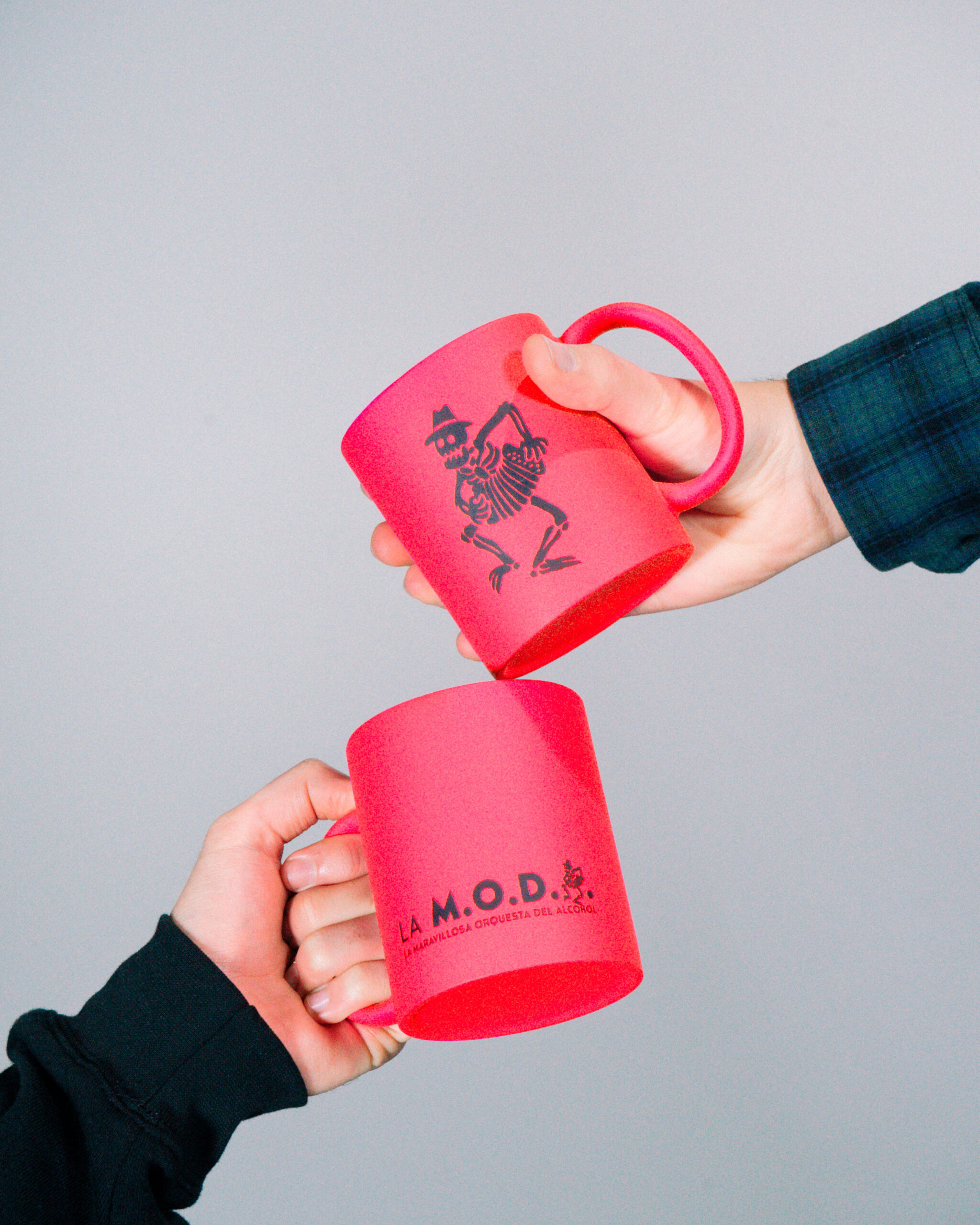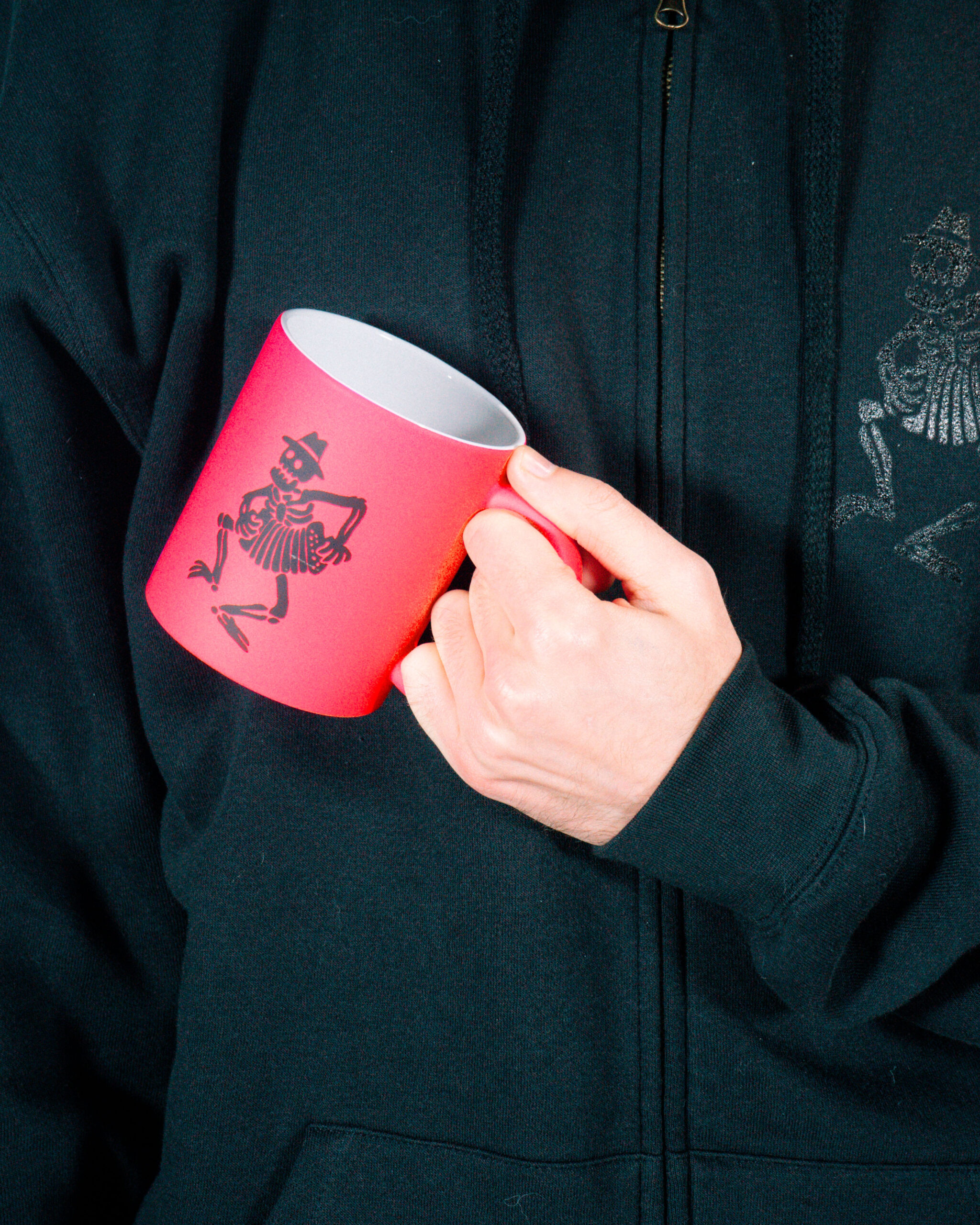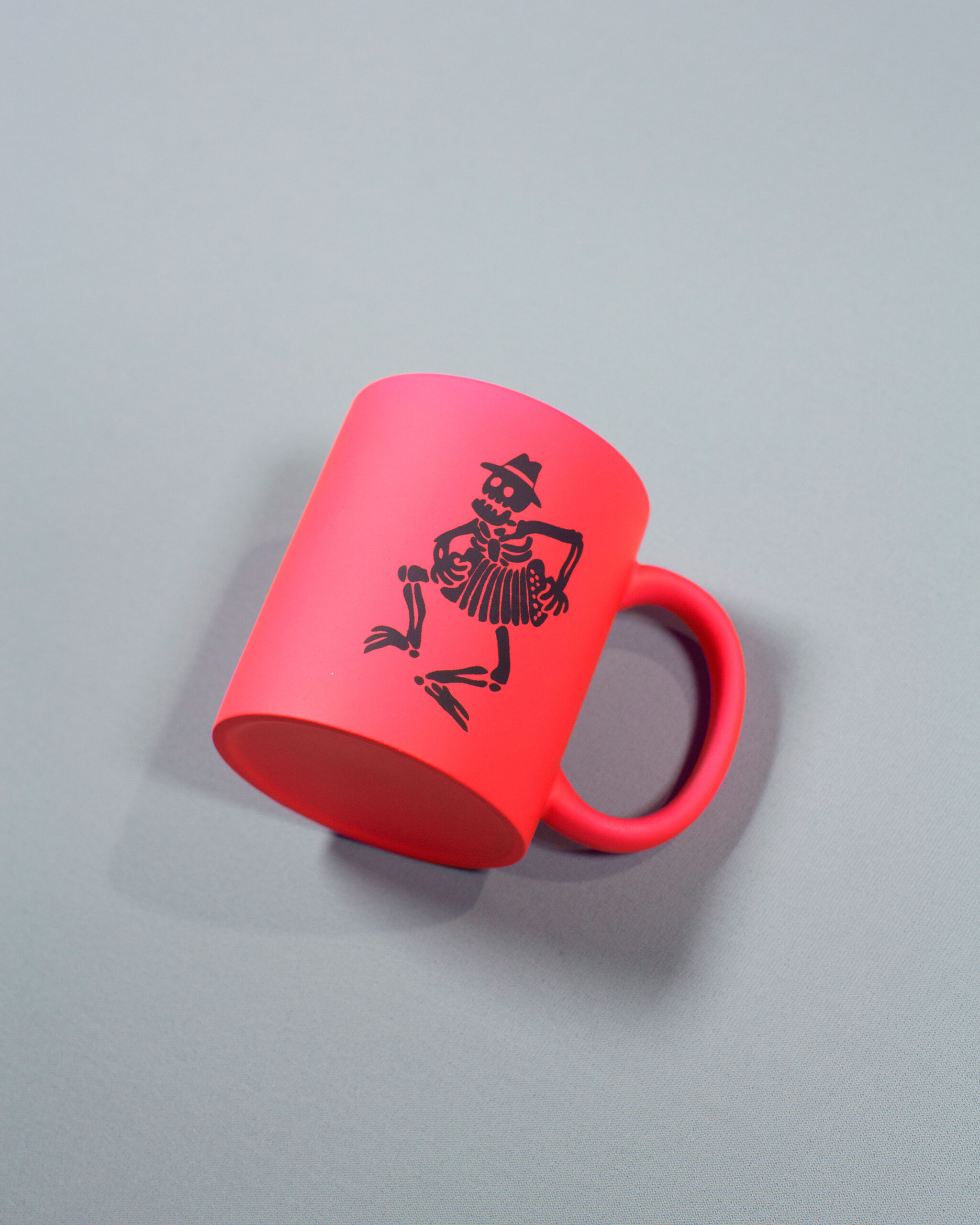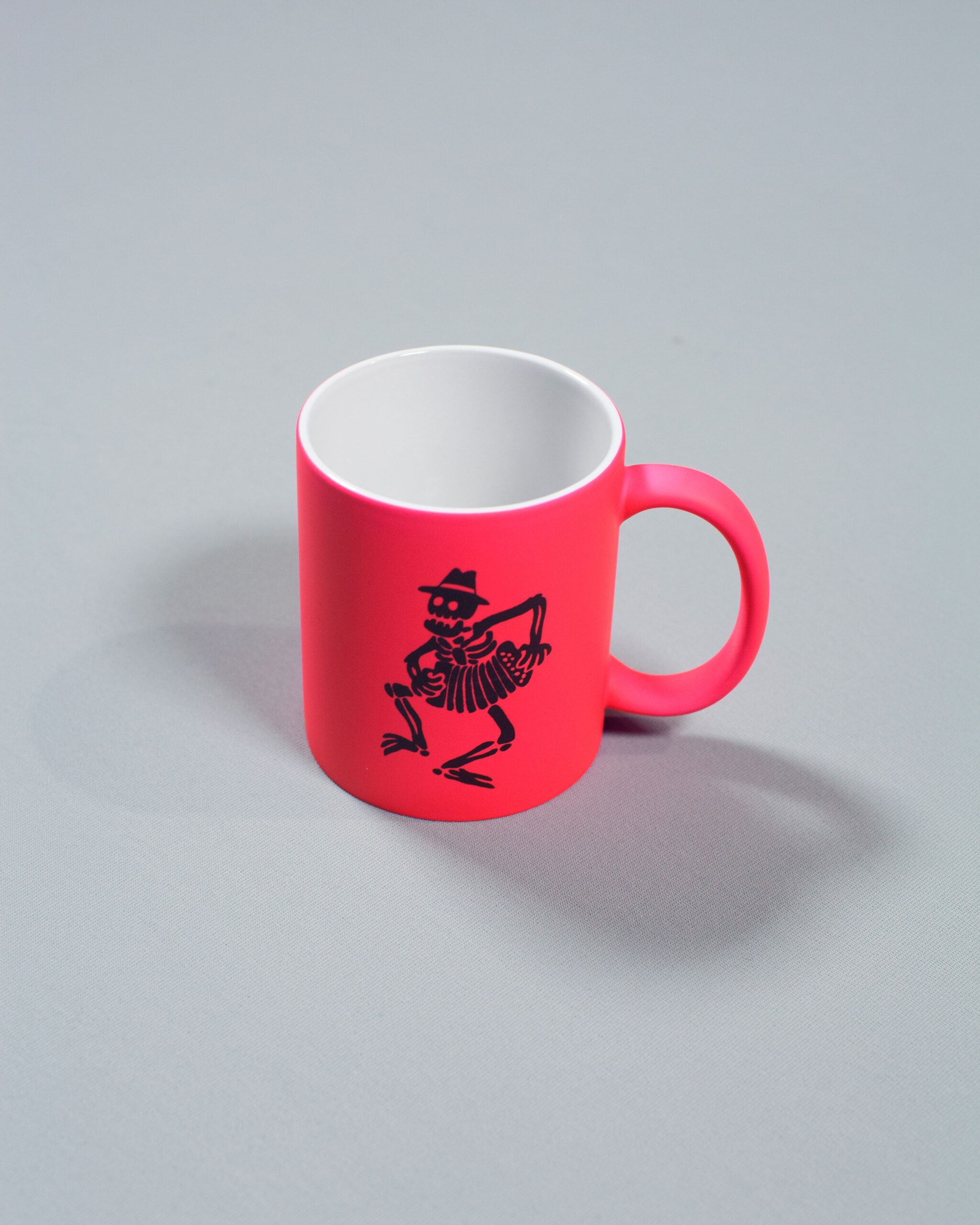 Taza cerámica rosa logo esqueleto.